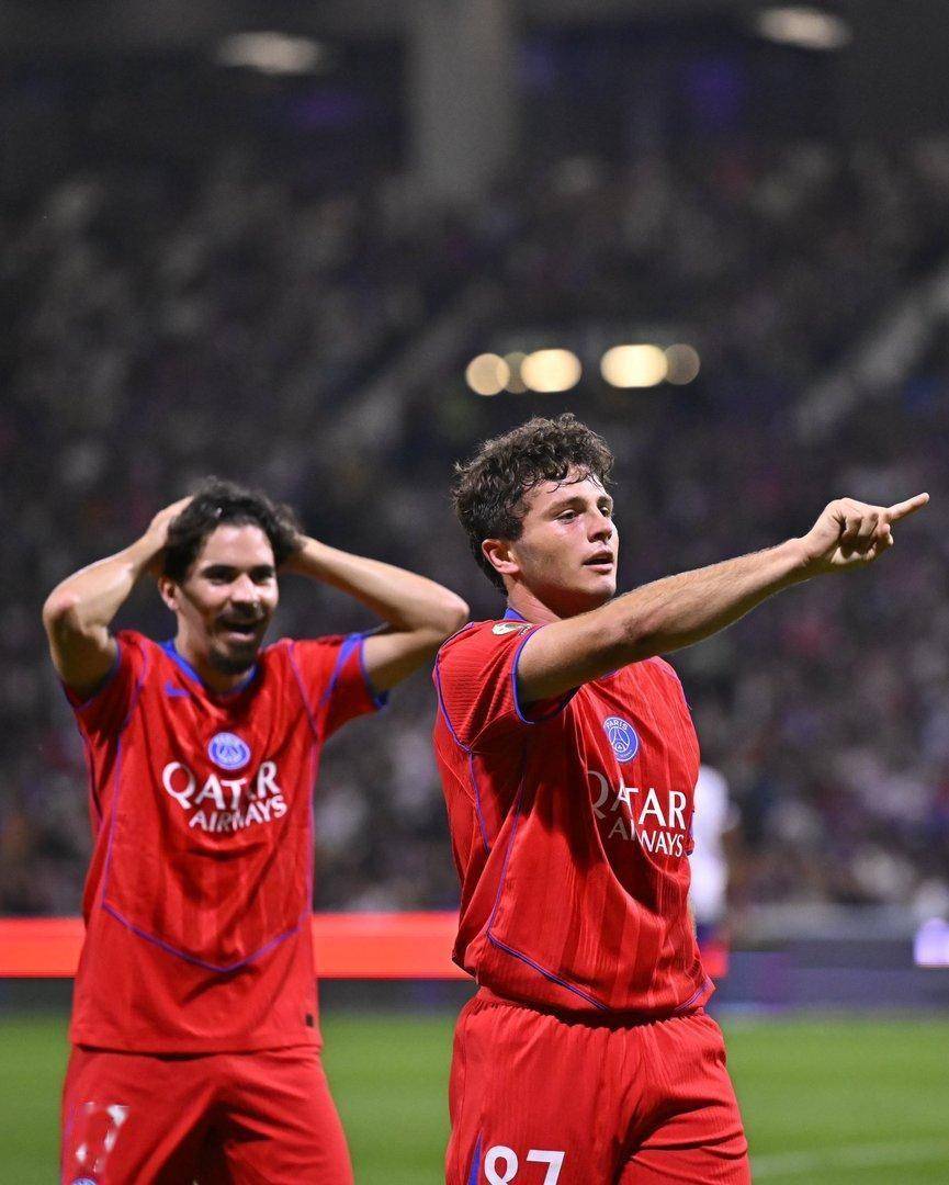 在2025-2026赛季法甲联赛第3轮的一场焦点战中,巴黎圣日耳曼客场以6-3的比分战胜了图卢兹,取得了联赛三连胜并登顶积分榜。这场比赛跌宕起伏,进球大战精彩纷呈。巴黎圣日耳曼在比赛中展现了强大的攻击力,若昂·内维斯上演了帽子戏法,其中包含两次精彩的倒钩破门和一记世界波。奥斯曼·登贝莱也贡献了两个点球进球。图卢兹虽然在主场打入三球,但最终未能抵挡住巴黎圣日耳曼的猛烈攻势。比赛中,图卢兹曾获得点球机会,但被巴黎圣日耳曼门将舍瓦利耶扑出两次。