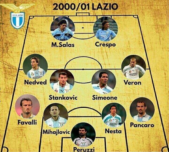 米哈伊诺维奇,内斯塔,西蒙尼,克劳迪奥-洛佩斯,隆巴多,内德维德,帕柳卡,小因扎吉,克雷斯波,萨拉斯。当年的拉齐奥凭借这个豪华阵容夺冠。